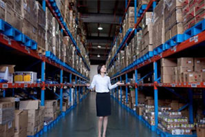 倉儲貨架面向通道進行保管。為使物品出入庫方便,容易在倉庫內移動,基本條件是將物品面向通道保管。
